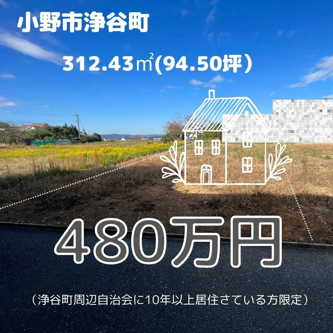 小野市浄谷町の土地販売中 小野市浄谷町で94坪の土地を販売しています 地縁者区域(浄谷町周辺自治会に10年以上居住されている方)限定の販売になります 浄谷町周辺に住んでらっしゃる方で土地を探してい…